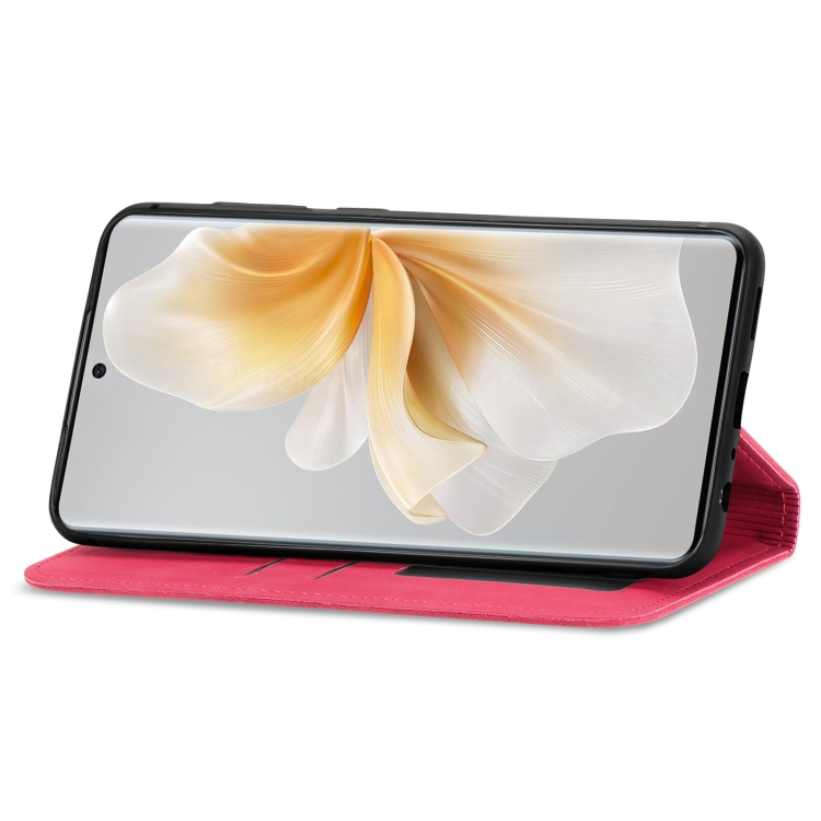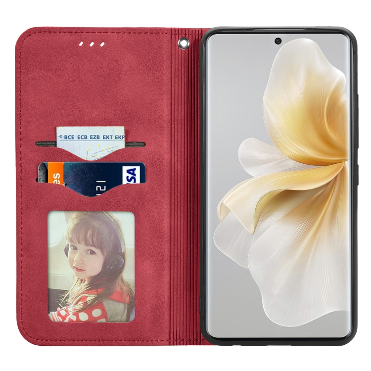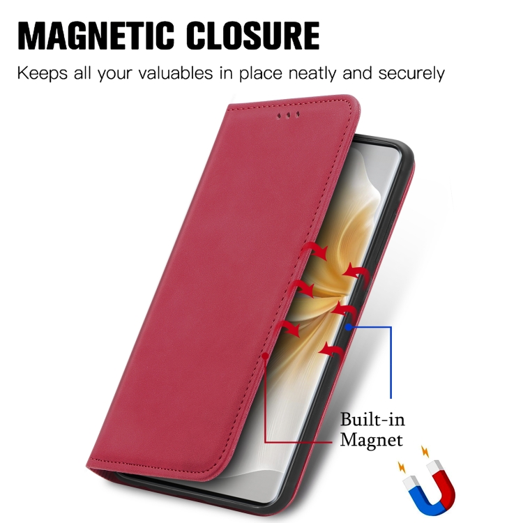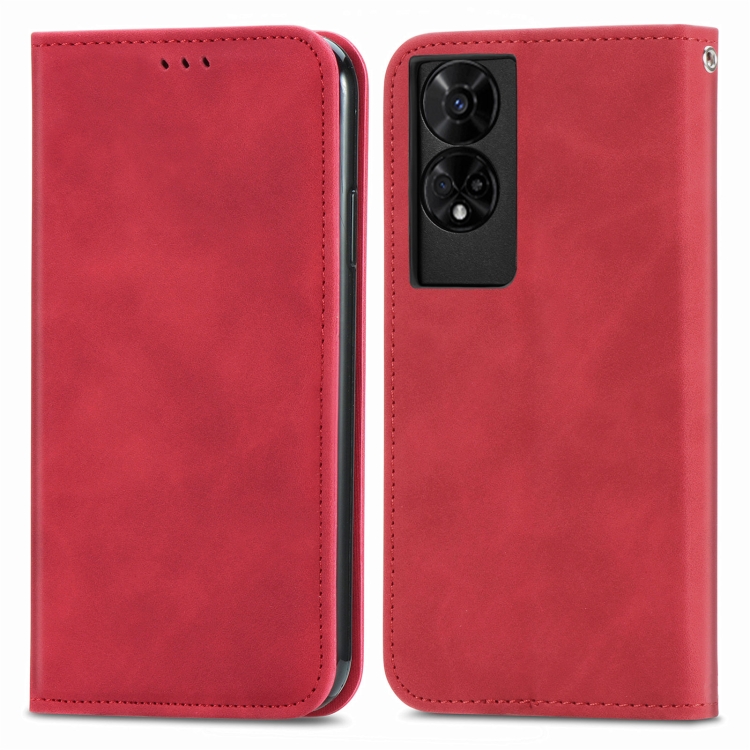 Funda de Cuero para Teléfono TCL 50 5G con Tapa Magnética y Tacto Retro (Rojo)