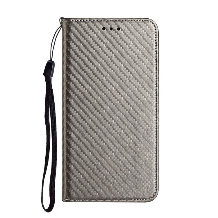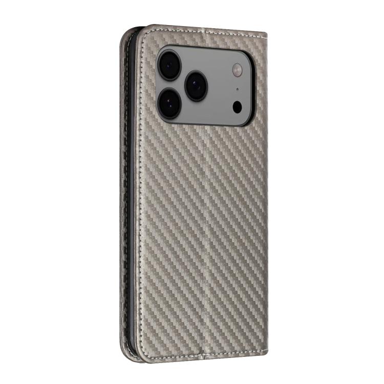 Funda de cuero con tapa magnética y textura de fibra de carbono para iPhone 17 Pro (gris)