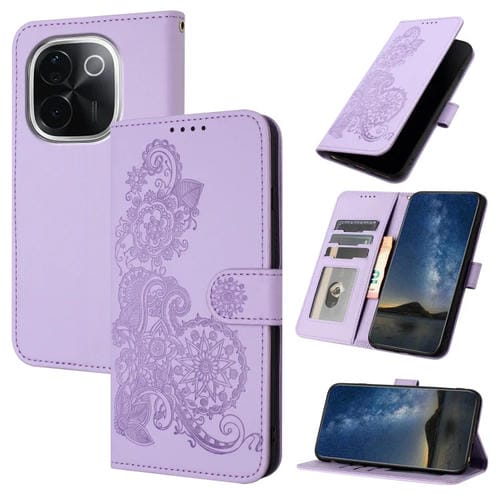Funda de Cuero con Tapa para Teléfono con Diseño de Flor de Datura En Relieve de la India para Vivo Iqoo Z9S Pro/T3 Pro 5G (Morado)