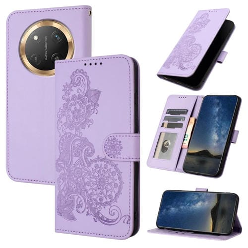 Funda de Cuero con Tapa para Honor X9C Global con Diseño de Flor de Datura en Relieve (Morado)