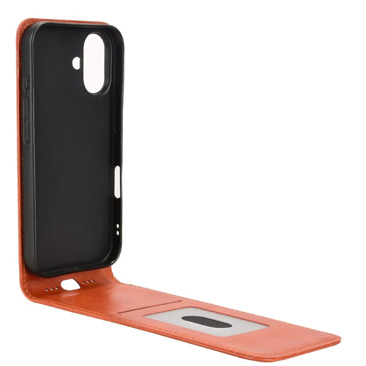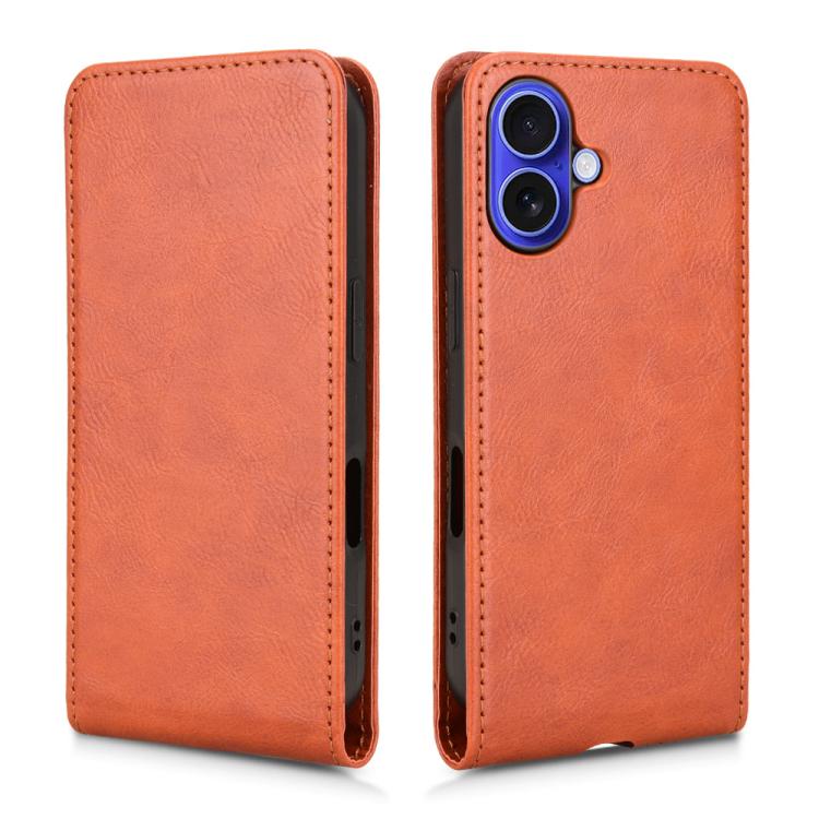 Funda de Cuero con Tapa Vertical Magnética para iPhone 16 (Marrón)