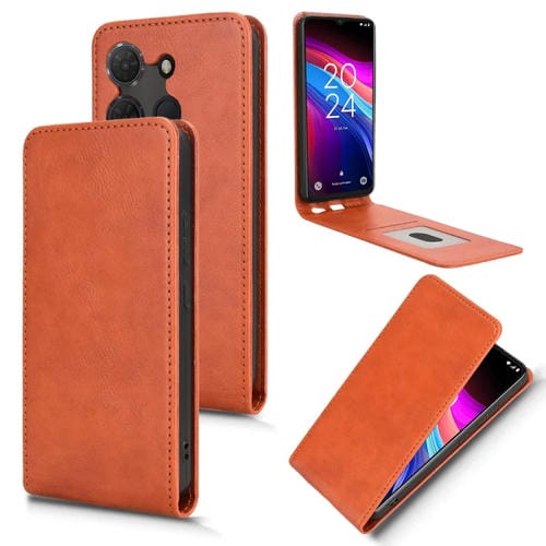 Funda de Cuero para Teléfono TCL 503 con Tapa Vertical Magnética (Marrón)