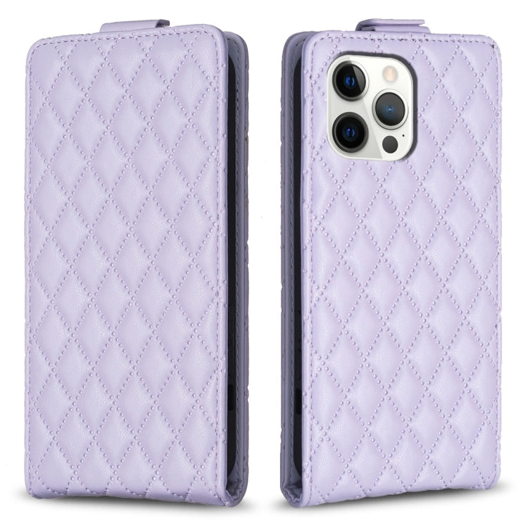 Funda de Cuero con Tapa Vertical para iPhone 12 Pro Max Diamond Lattice (Púrpura)