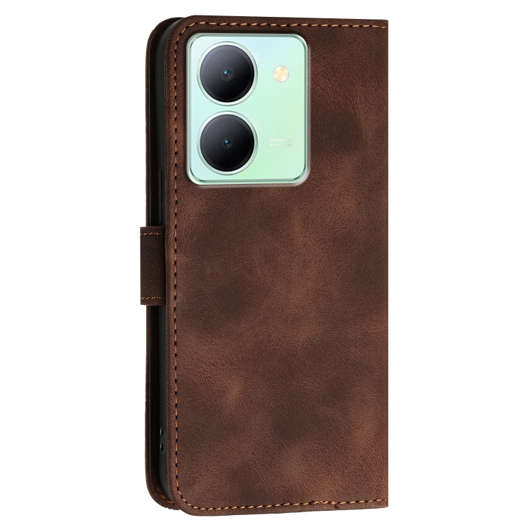 Funda de Cuero con Tapa y Cordón para Vivo Y36 5G Global Yx0080 con Diseño En Relieve de Mariposa y Cuadrícula (Café)