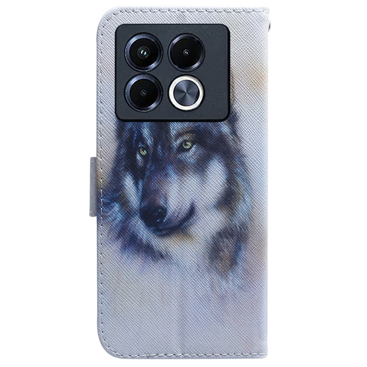 Funda de Cuero con Tapa y Dibujo a Color para Infinix Note 40 5G (Lobo Blanco)