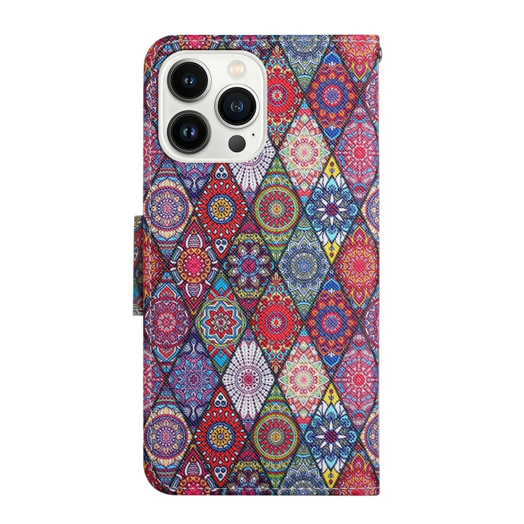 Funda de Cuero con Tapa para iPhone 16 Pro Dibujo Color 3D (Caleidoscopio)