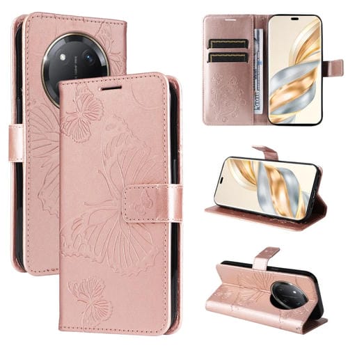 Funda de Cuero con Tapa y Mariposa En Relieve 3D para Honor X9C 5G Global (Oro Rosa)