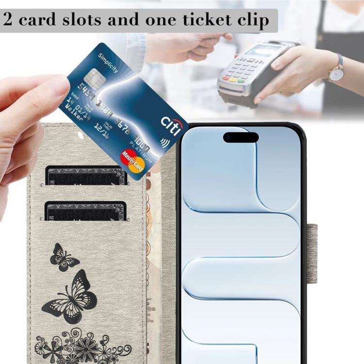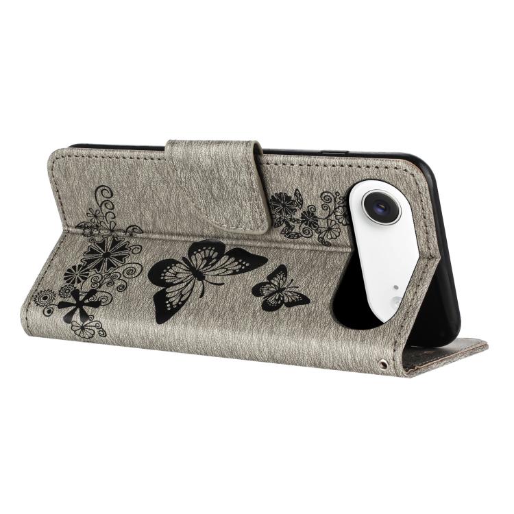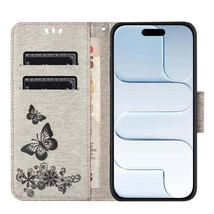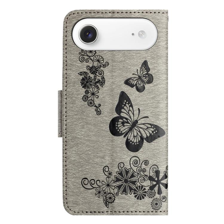 Funda de cuero con tapa y diseño de mariposas en relieve para iPhone Air (gris)