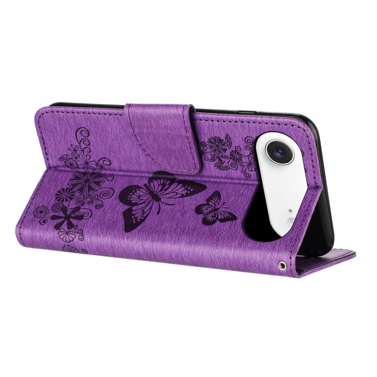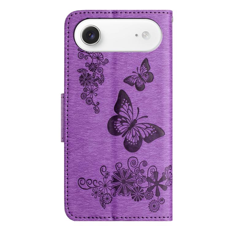 Funda de cuero con tapa y diseño de mariposas en relieve para iPhone Air (morado)