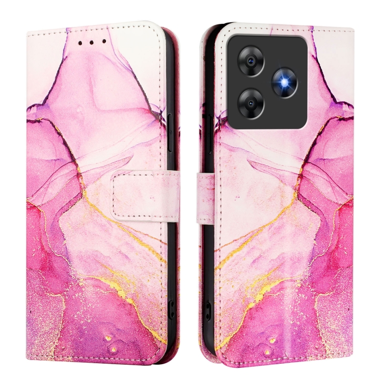 Funda de Cuero con Tapa y Diseño de Mármol para BlackView Wave 8C Pt003 (Rosa, Morado y Dorado)
