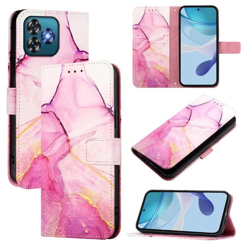 Funda de Cuero con Tapa y Diseño de Mármol para Oukitel C53 Pt003 (Rosa, Morado y Dorado)