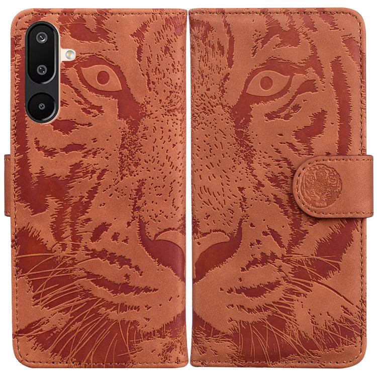 Funda de cuero con tapa y estampado de tigre para Samsung Galaxy M16 5G / F16 5G / M36 5G (marrón)