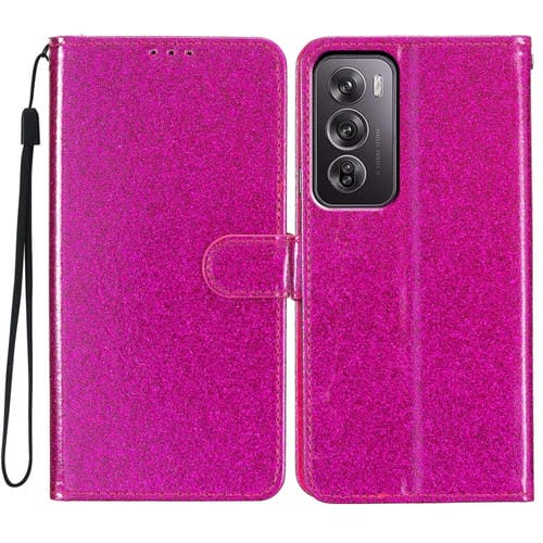 Funda de Cuero con Tapa y Purpurina para Oppo Reno12 Pro (Rosa)