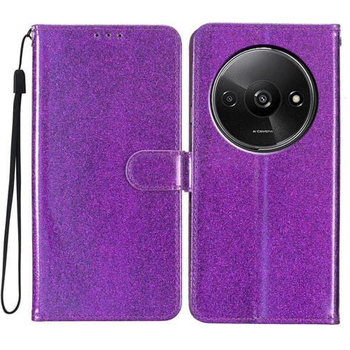 Funda de Cuero con Tapa y Purpurina para Redmi A3 (Morado)
