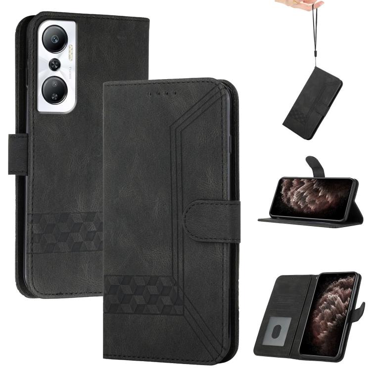 Funda de Cuero con Tapa y Tacto de Piel Cúbica para Infinix Hot 20 4G (Negra)