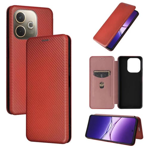 Funda de Cuero con Tapa y Textura de Fibra de Carbono para Oppo A5 Pro 5G (Marrón)