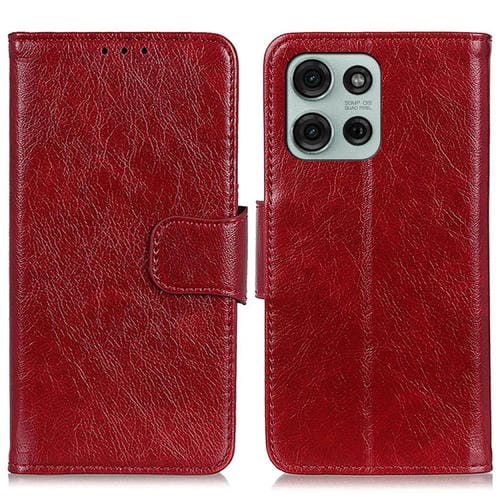 Funda de Cuero con Tapa y Textura Nappa para Motorola Moto G75 5G (Rojo)