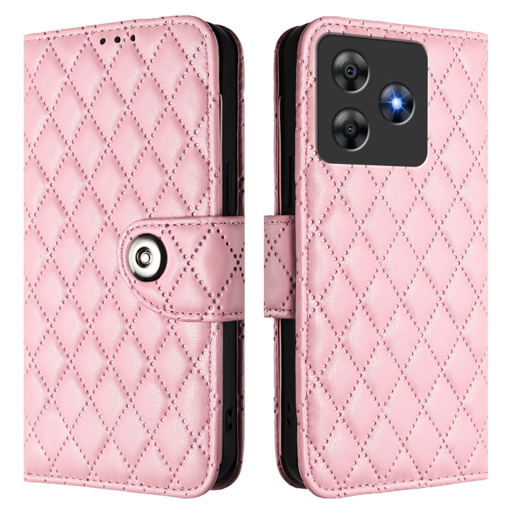 Funda de Cuero con Tapa y Textura Rombal para BlackView Wave 8C con Cordón (Rosa)