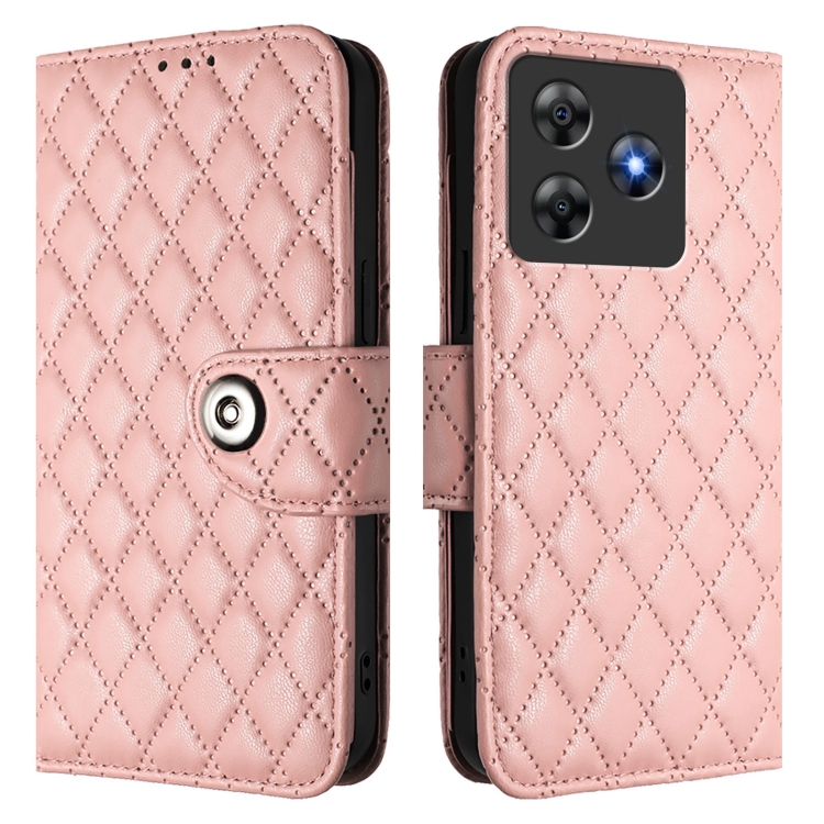 Funda de Cuero con Tapa y Textura Rombal para BlackView Wave 8C con Cordón (Rosa Coral)