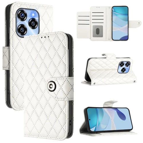 Funda de Cuero con Tapa y Textura Rombal para Oukitel C50 con Cordón (Blanco)