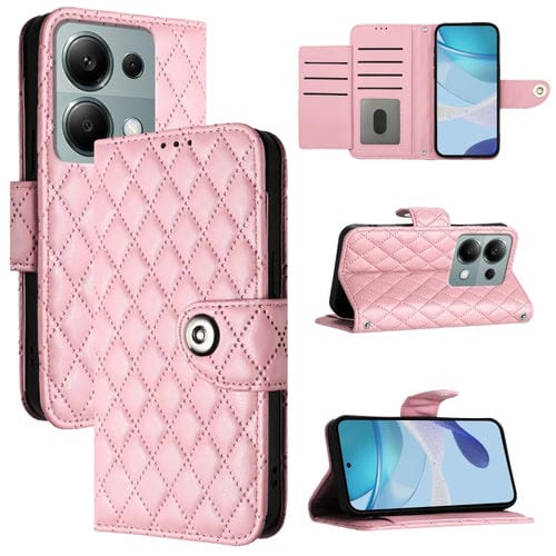 Funda de Cuero con Tapa y Textura Rómbica para Redmi Note 13 Pro 4G Global con Cordón (Rosa)