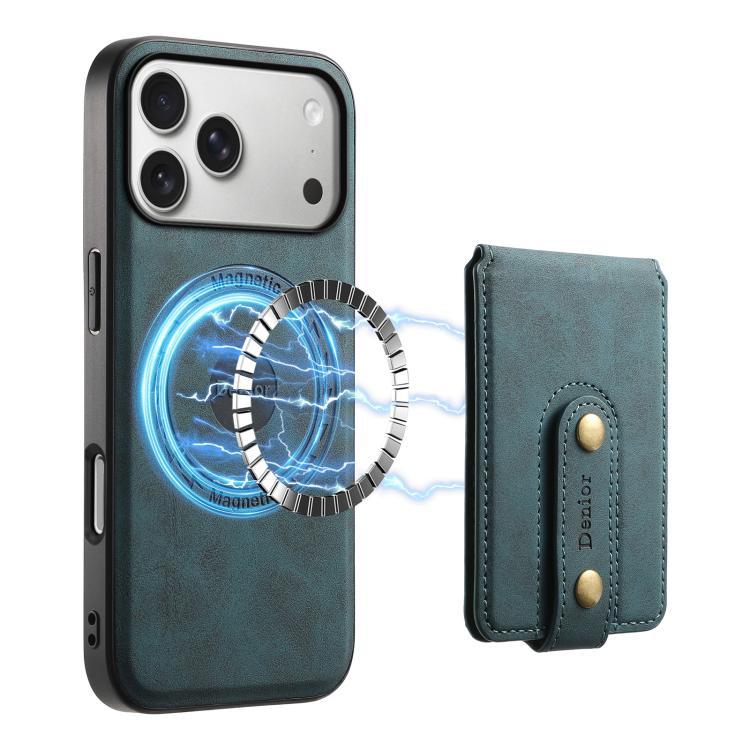 Funda de cuero con tarjetero magnético MagSafe para iPhone 17 Pro Max Denior D14 NK con diseño retro (azul)