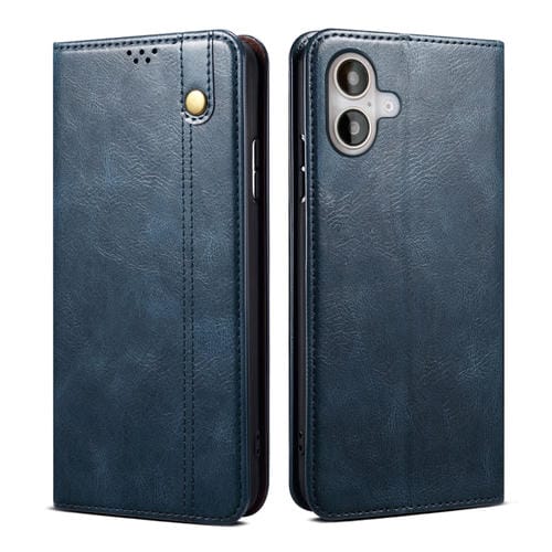 Funda de Cuero Crazy Horse para iPhone 16 Plus (Azul)