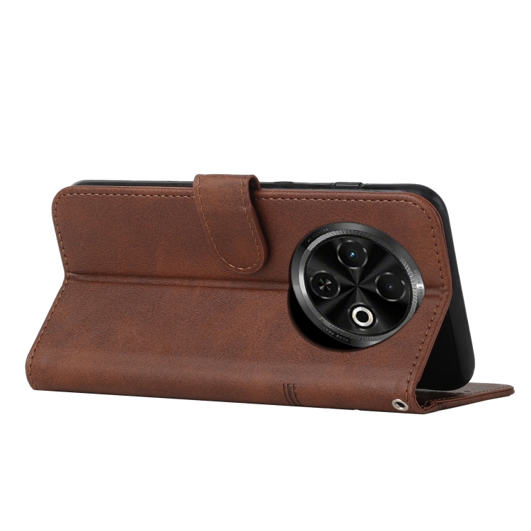 Funda de Cuero con Textura de Becerro y Hebilla para Tecno Spark 30C (Marrón)