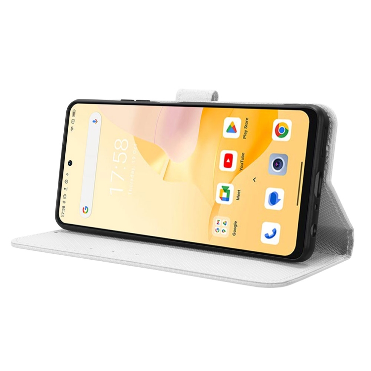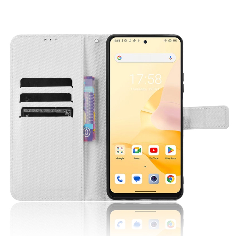 Funda de Cuero con Textura de Diamante para BlackView Shark 8 y Oscal Tiger 12 (Blanca)