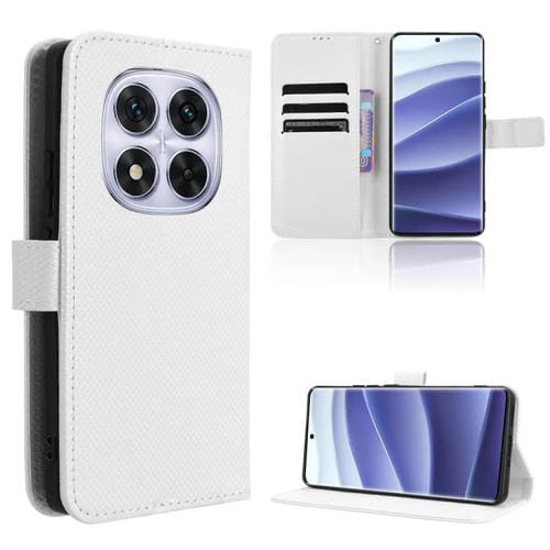 Funda de Cuero con Textura de Diamante para Redmi Note 14 Pro+ 5G (Blanca)