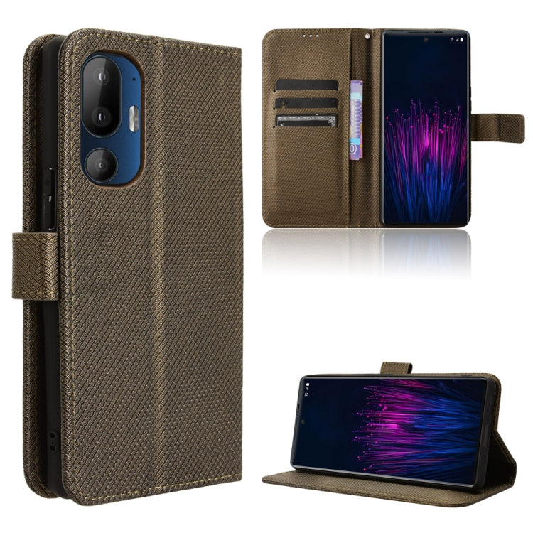 Funda de Cuero con Textura de Diamante para Teléfono HTC U24 Pro (Marrón)