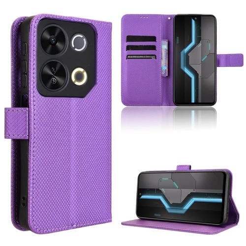 Funda de Cuero con Textura de Diamante para Teléfono Itel P65 4G (Morado)