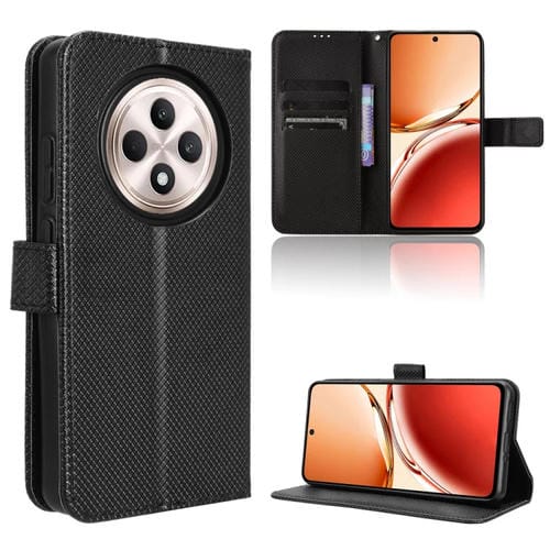 Funda de Cuero con Textura de Diamante para Oppo Reno12 F 5G (Negra)