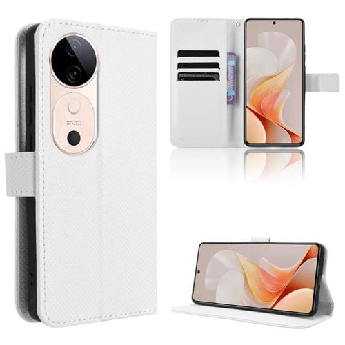 Funda de Cuero con Textura de Diamante para Vivo S19 5G (Blanca)