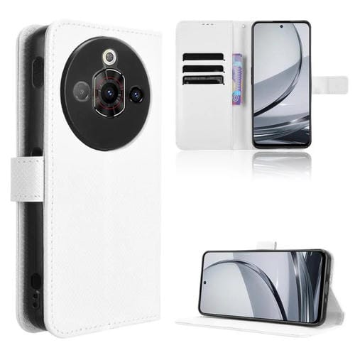 Funda de Cuero Textura Diamante para ZTE Nubia Focus Pro 5G (Blanca)