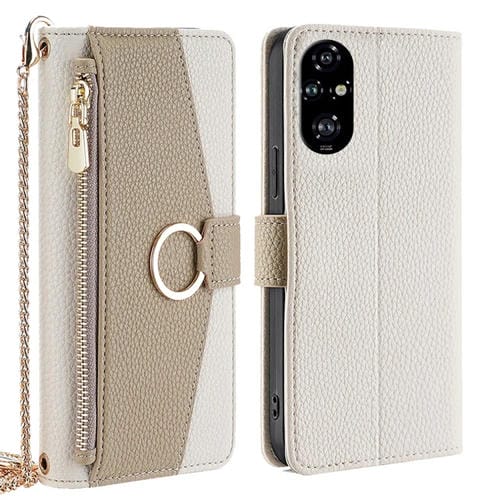 Funda de Cuero con Textura de Lichi y Bandolera para Honor 200 Pro 5G (Blanca)