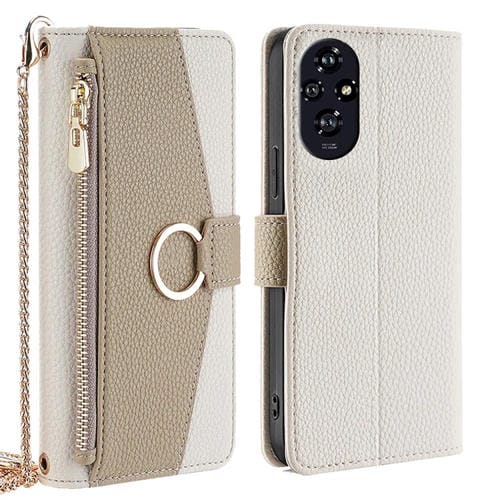 Funda de Cuero Textura de Lichi para Honor 200 5G Diseño Cruzado (Blanco)