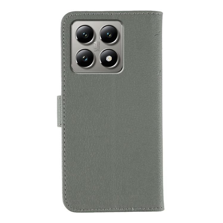 Funda de cuero con textura de lichi y estampado de plumas para Xiaomi 14T Pro (gris)