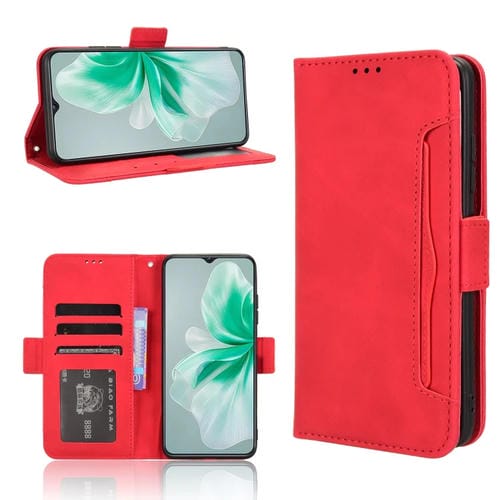 Funda de Cuero Textura Piel de Becerro con Ranuras para Tarjetas para Oukitel C38 (Rojo)
