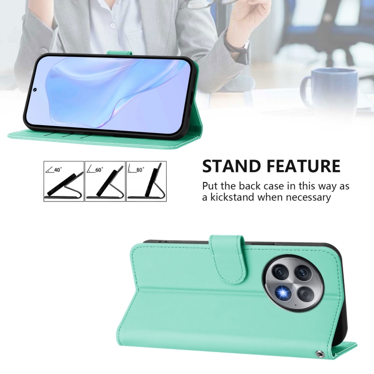 Funda de Cuero Texturizada para OnePlus Ace 2 Pro 5G con Cordón (Verde Menta)