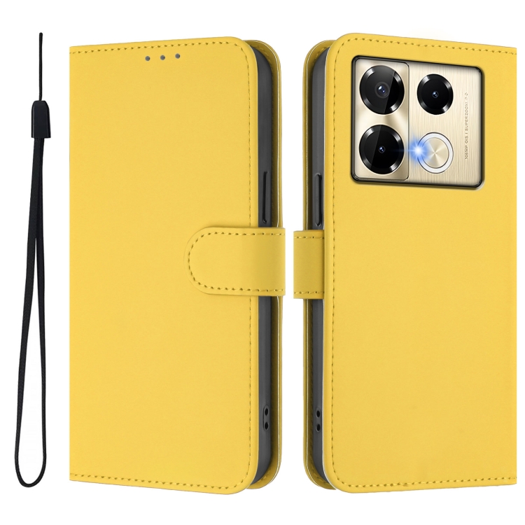 Funda de Cuero para Infinix Note 40 Pro 4G con Textura de Piel y Cordón (Amarillo Limón)