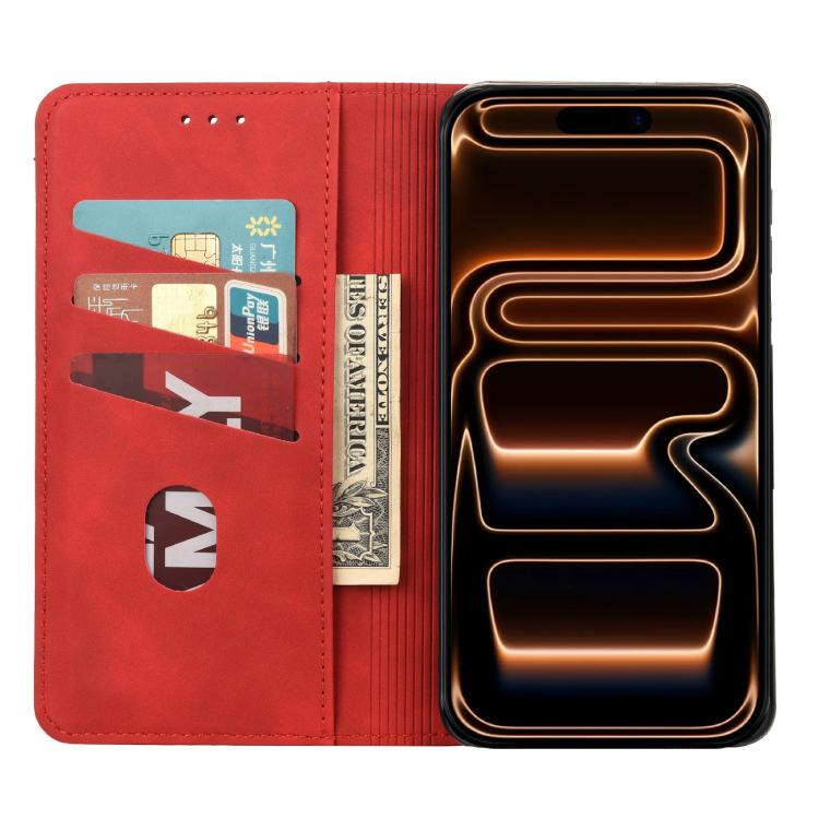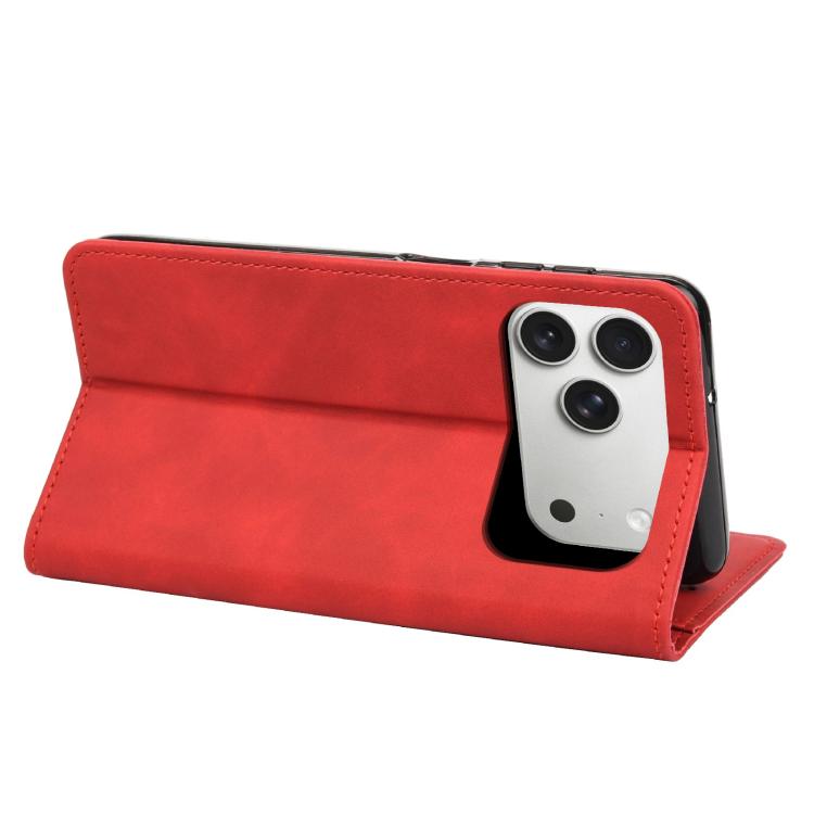 Funda de cuero con textura de piel para iPhone 17 Pro (roja)