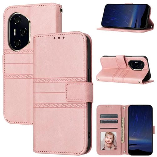 Funda de Cuero con Textura de Piel y Rayas En Relieve para Honor 300 Pro 5G/300 Ultra 5G (Rosa)