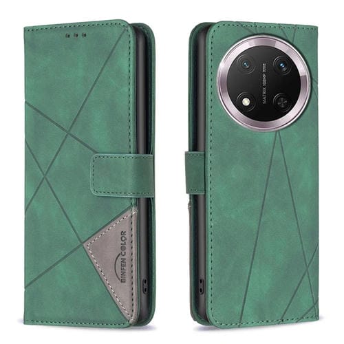 Funda de Cuero con Textura de Rombos y Hebilla Magnética para Honor X9C 5G (Verde)