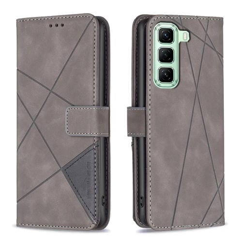 Funda de Cuero para Infinix Hot 50 4G con Textura de Rombos y Hebilla Magnética (Gris)