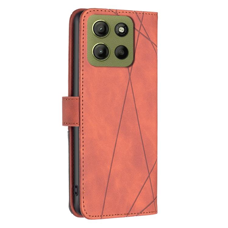 Funda de Cuero Motorola Moto G15 con Textura de Rombos y Hebilla Magnética (Marrón)