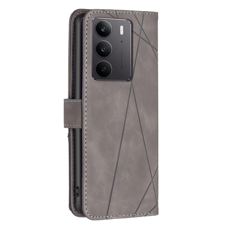 Funda de Cuero con Textura de Rombos y Hebilla Magnética para Realme C75 4G (Gris)