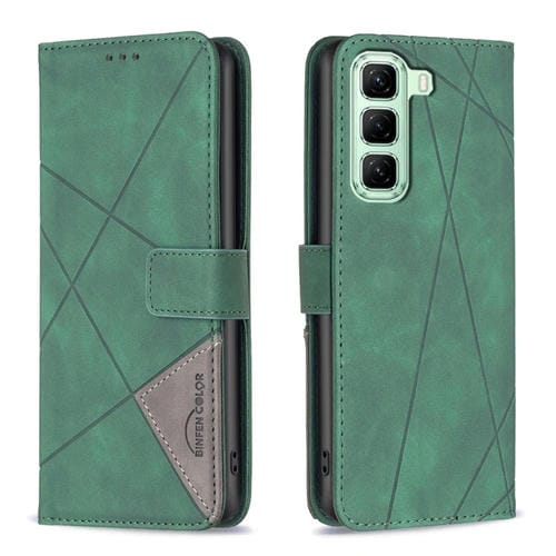 Funda de Cuero Infinix Hot 50 4G con Textura de Rombos y Hebilla Magnética (Verde)