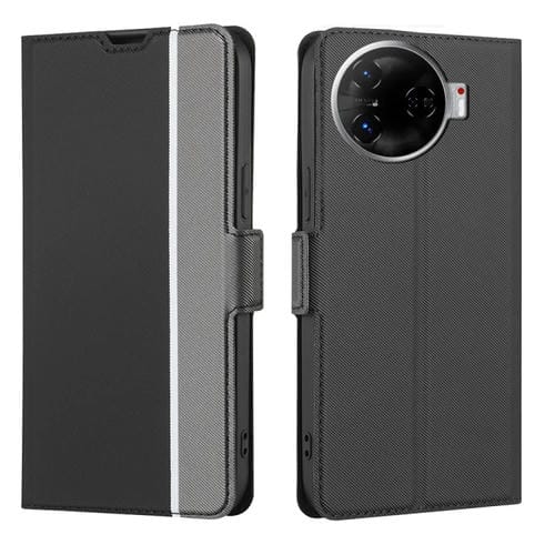 Funda de Cuero con Textura de Sarga y Botones Laterales para Tecno Camon 30 Pro 5G (Negro)