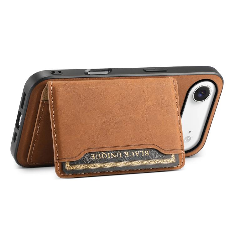Funda de cuero con textura retro para iPhone Air Denior D13, con tarjetero MagSafe (marrón)
